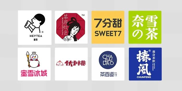 喜茶=芝士茶、贡茶=奶盖茶、益禾堂=烤奶、书亦=烧仙草、7分甜=杨枝甘露、一点点=波霸奶茶、鹿角巷=黑糖鹿丸鲜奶。