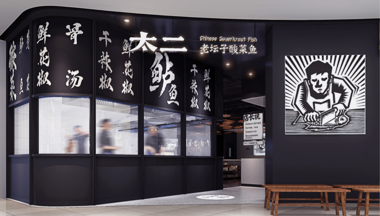 无论是太二酸菜鱼的核心IP形象,还是它的门店装修,均采用了统一的黑白日漫画风,二次元风格明显。