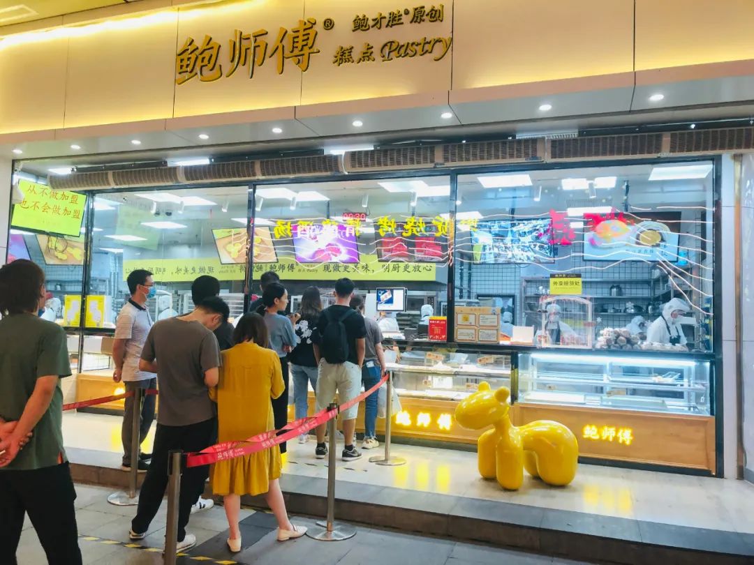 以上这些品牌,我看了看,很多都是比较年轻的牌子,像是墨茉点心局仅是去年才成立的,虎头局也就更早了一年。而年纪长一些的,如1999年成立的詹记,2013年成立的泸溪河,他们则在门店数量上有较大的优势,均已超过了百家。顺应着年轻人的目光越来越投入到新中式烘焙身上,店铺的连续扩张,也能让更多人接触到他们,比如前不久“后生可畏”的虎头局就进驻到了魔都了,引了很多人前去打卡。那,他们都是如何投年轻消费者所好,从而等到了新中式烘焙的春天呢?首先,在我的认知之中,会把产品作为一个品牌的立足根基。西式烘焙之中,吐司、蛋糕、饼干成为了饼房之中的三大抓手。那新中式烘焙店中,什么又是强有力的吸睛神器呢?口说无凭,让我以6家比较火的店先来做个简单的盘点。鲍师傅糕点,由鲍才胜先生在2004年原创于北京,在2013年一档北京电视美食地图节目中,成为了小有名气的口碑小吃。同时依靠着一款“肉松小贝”一战成名。海苔肉松小贝、海苔酥松小贝、奶香提子酥、泡芙、芝士奶酪麻薯、绿豆冰糕、蛋黄酥……强调现做现卖,新鲜好吃,并且主打明厨亮灶的产品生产过程,让消费者能够切实看到整个出品过程。