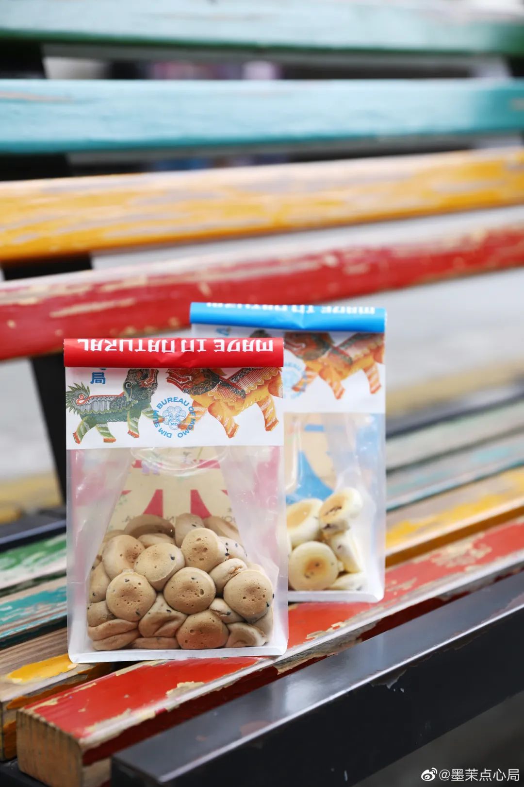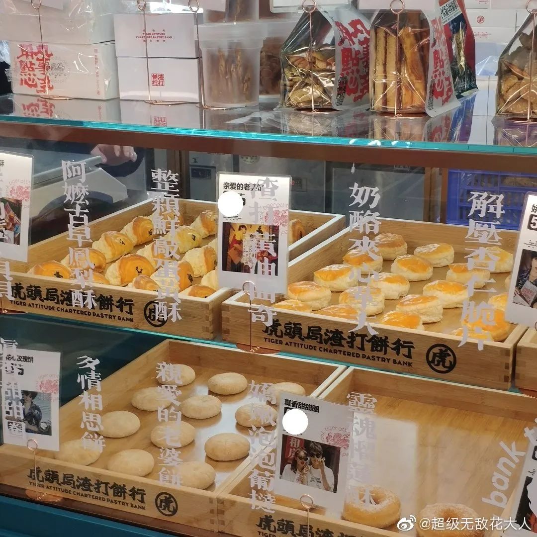 一方面,通过上述列举的6家品牌产品线,我们基本能够看出,他们贩售着融合中式糕点与西点风味技巧的一种新中式烘焙。在口感口味、尺寸造型、层次风味、健康营养、匠心工艺中,尽可能强调着一种新鲜力、颜值力与传承感。以更趋近于零嘴的形式与份量,有别于以往口味略显单一粗口的饼、糕、糖为主体的产品,来满足消费者的品尝与心理需求。比如墨茉点心局和虎头局聚焦的主力军麻薯,放大了软糯Q弹的口感;鲍师傅的肉松小贝,结合了酸甜的沙拉酱与厚厚一层海苔肉松,巧妙展现了丰富的层次。还有中式点心的网红产品盘挞,可叠加的多层次内馅,都以偏向于中点西做的混搭形式,提升了中式糕点的美味度。在如今的中点店中,我们不仅能看到经典的桃酥、绿豆糕,其实更招人喜欢的也就是这些差异化的产品了。最近,我也看到低糖低脂成为了大受欢迎的主流趋势,在墨茉点心局的菜单中就可以看到有专门开辟的低糖系列。无论从门店、包装、海报的设计上,这些品牌都巧妙贯穿了国潮的概念。比如在一众风格较为统一的极简风或欧式风、日式风中,墨茉点心局就以一个传统瑞兽狮子头作为Logo亮相,且设计得俏皮感十足,再以复古色红蓝为主色调,抢眼又有新意。包装上,也迎合着年轻人的审美。重点就是要让他们能够愿意拿在手上,愿意分享社交,从而轻松实现在小红书、抖音等拥有巨大流量的社交平台上,吸引更多的年轻一代消费者前来种草打卡。“口口相传”之下,自然能一跃成为瞩目的焦点。比如我前几天发的依茉朵家的冰面包,也是依靠着抖音的流量,成功跻身“网红”之列。大排长龙的队伍,更是进一步刺激着年轻消费者。说实话,如今新中式糕点的弱势也非常显而易见的。在我列出的6家门店之中,还是能够看出产品的大同小异。有麻薯、有桃酥、有绿豆糕、有泡芙、有盘挞……该有的每家店都有了。且各家都打着中点复兴的名头,输出着中点文化,同时也基本上借了国潮的东风,所以,本质上来说,各个新中式烘焙品牌之间,同质化依然明显。就像最初的网红鲍师傅,如今也报道着排队的人气大不如从前了。