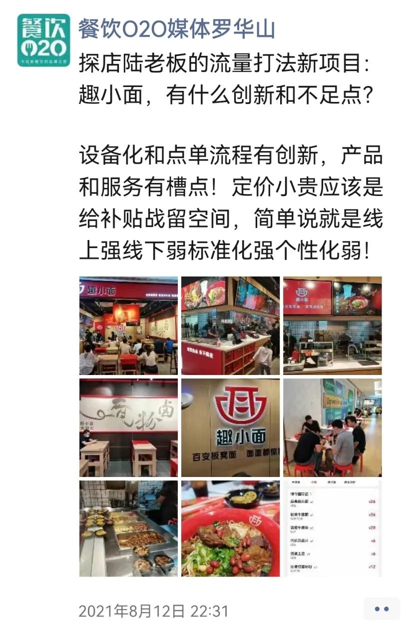 也有媒体报道,陆正耀团队要以“趣小面”品牌起步,吸纳其它小吃品牌做成美食城,最终以线上化的APP形式呈现。