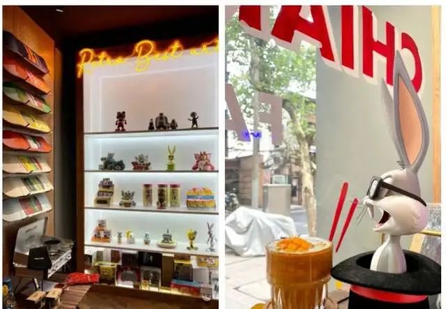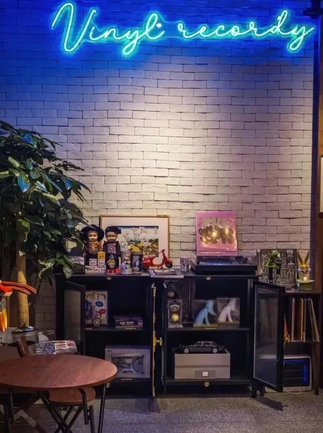 空间分为展示区和咖啡吧台区,店里不仅有来自世界各地的古董手办和复古家具,还有户外露营装备、黑胶唱片、香薰和画报等,很有美式街头咖啡馆的氛围。
