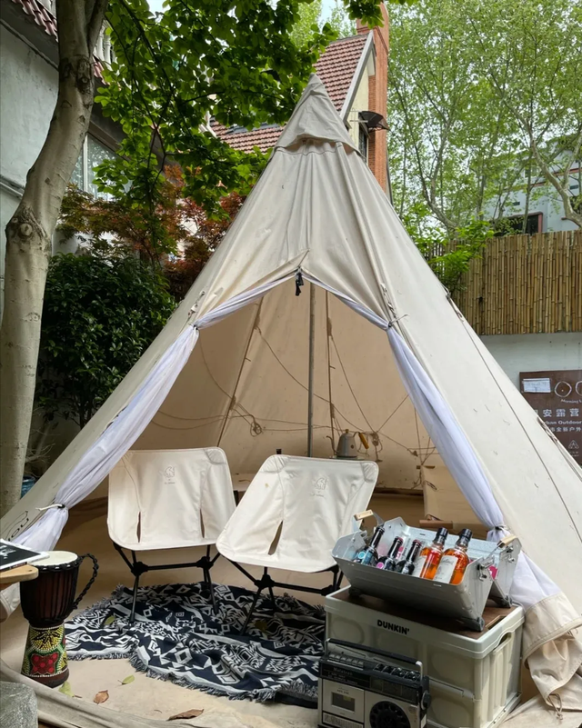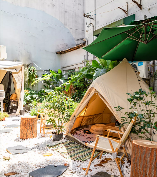 选址也会在考虑在市区内,只需要门店拥有足够大的院子,就可以搭起一个不需大面积空地的露营空间,顾客的消费体验也不会比沉浸式的要差。