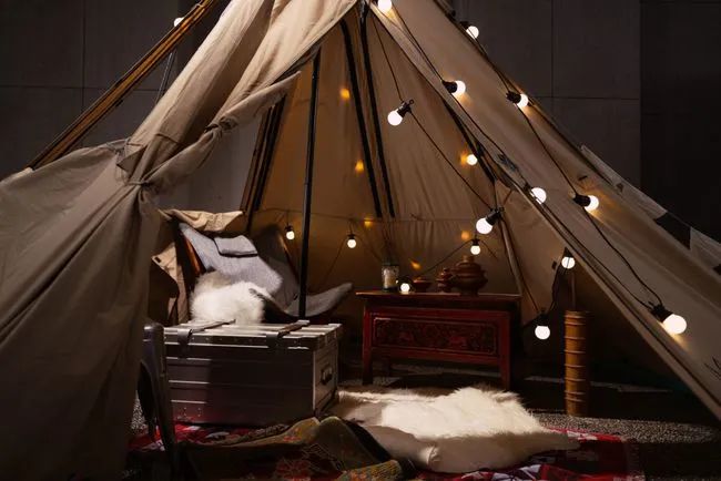 店里所有的帐篷、油灯、水杯等都是知名品牌,不但配备室外的露营地点,室内也有空间,The Canopi的空间以西塞罗的《自然法思想》”为灵感来源,名为:natural principle parlor(自然原则客厅),想去打卡记得提前三天预约哦。