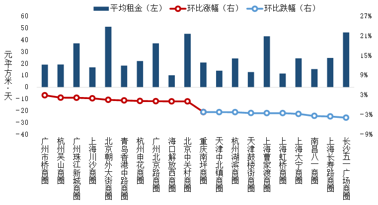 图:2020年下半年租金环比涨跌幅较大的商圈